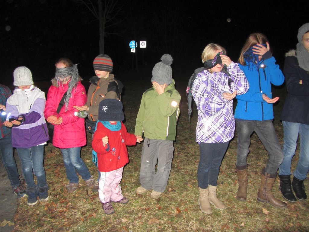 Bei diesem letzten Event für das Jahr 2012 kamen rund 30 Kinder des KSC-Hünfelds zusammen um bei einem dunklen Abend eine ganz besondere Wanderung zu starten. An vielen Stellen der Strecke warteten unterschiedliche Aufgaben, welche die Kinder nur mit Hilfe ihrer Sinne meistern konnten. Hier sei zum Beispiel das laufen an einem dünnen Faden durch unwegsames Gelände, Gummibärchenfarbe anhand des Geschmackes erraten oder Barfuß erraten über was man läuft erwähnt.
